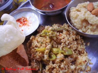 Yeah, a vegetarian Sunday lunch was what I was looking for. There is really no fun in cooking for myself alone right! I remember the flavoursome, Vangi Bath from the days when Amma used to make it. At my parents' home, Saturday was always dedicated to a Vegetarian feast, so we have a lot of choices and Amma always indulges us.