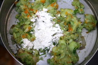 After the onions are browned, remove to a bowl and allow to cool. Then add about 1 tbsp of All purpose flour!