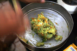 i seriously love this stuff. i think only we indians have such a huge and scrumptious variety of appetizers - i could eat this all the time.