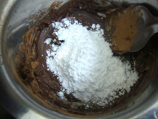 Shift the flour along with baking powder, cooking soda and cocoa powder.