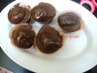 All the three were eagerly waiting for the muffins to be done. Chinnu wanted the icing and all of them gobbled 1 each right away, went on the second but managed to eat off the frosting and managed to bite more. Konda said she liked the Banana Muffins better. I think she said that because these didn't have those chocolate chips that I refused to part with. I know by tomorrow nothing will remain.