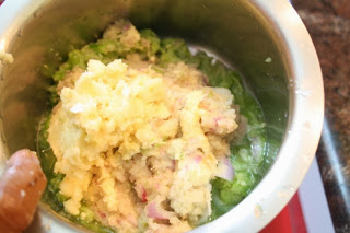 Prep onions, garlic, ginger, and green chilies. Grind it coarsely and keep it aside.