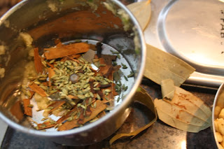 Coarsely powder the cinnamon, cloves, fennel seeds, cumin seeds, keep it aside.