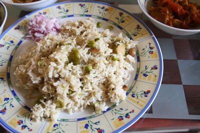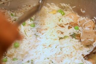 I got in the action with my camera and caught the cooking from the beginning. This is one of those classic dishes that need to be surely recorded. She used basmati rice and the water measurement is all eyeball and approx whistles. Yet the rice turned out great, with just the right texture to it, grains separated and yet well cooked. As they say, cooking is really an art.