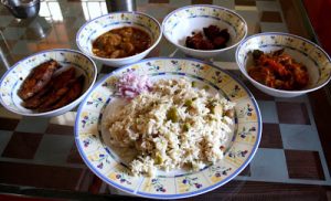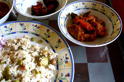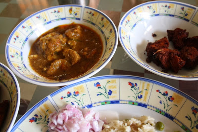 All under an hour, she made this Vegetable Biryani, two types of Fish fry, Chicken 65, Chicken Kurma, and Brinjal Curry for the Vegetarians.