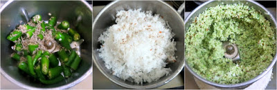 Grind the coconut with chilies, cumin, and garlic (if using) to a fine paste, adding water as required.