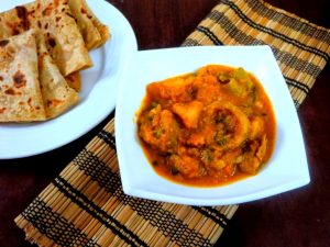 Few years back, we might have been surprised to see all these vegetables in Madras. However we get all these vegetables now and I find my North Indian friends being so surprised knowing that we get these. As I said Amma has been using this and got for me as well. So it was this combination with aloo that was made for dinner along with rotis.