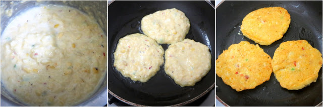 Cook the cachapas for 3-5 minutes. Flip and cook for 3-5 more minutes, pressing the mixture flat if desired.