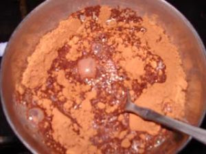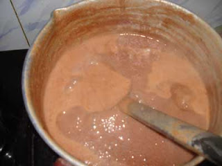 • Once milk is boiled, add cocoa paste slowly making sure it does not become lump. Cook for 10 mins.