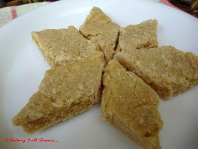 The timing is very important for making this burfi. Though the top texture looks uneven and gives a tough appearance, it is very soft. If more ghee was added it becomes your perfect melt in your mouth kids!