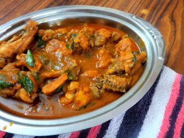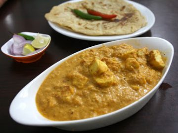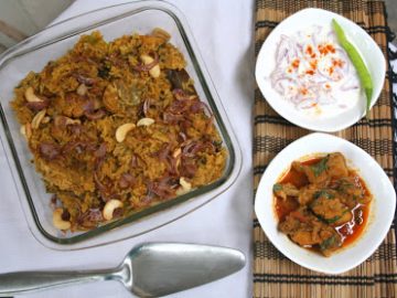 As this korma is served as a side dish for biryani, it is mildly spiced and uses very little spices.