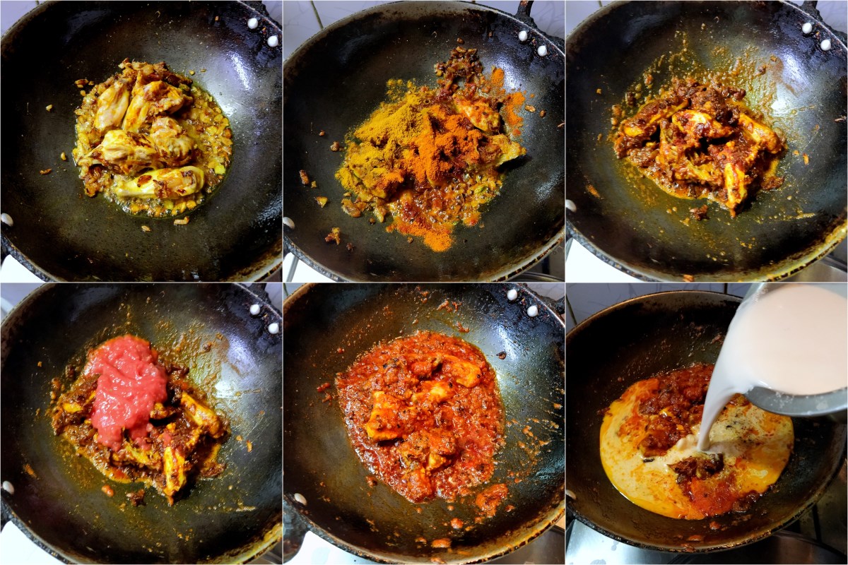 - Continue cooking until the chicken is coated well with the spice powders. This takes about 10 mins on low flame.