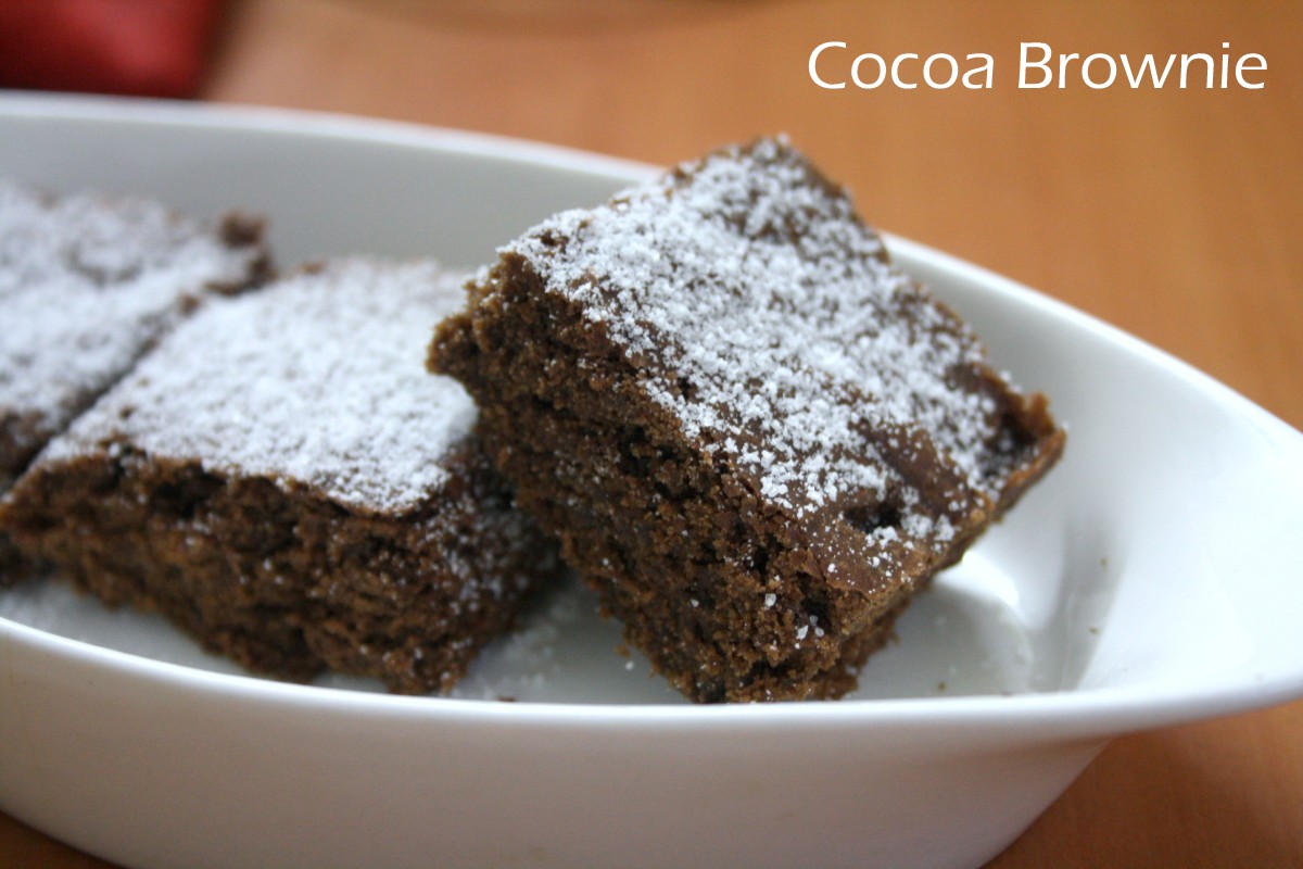 For the brownie today, I have a butterless brownie made with cocoa and nothing else. I didn't want to use any cooking chocolate and wanted to keep it simple.