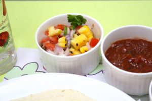 Along with the Vegetable Fajitas, I served this Grilled Sweet Corn with Onion and tomato Salsa. The salsas made with fresh ingredients are very refreshing on your tortillas as they add so much freshness and you get your share of vegetables as well.You can be very innovative with the salsa recipe.