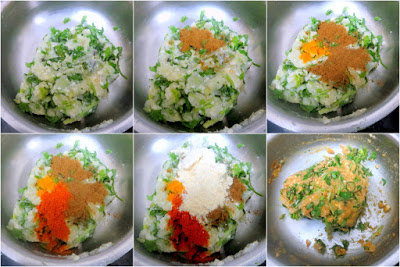 MW Potato for 5 mins, mash well. Take the mashed potato in a bowl along with the greens and mashed vegetables. Mix everything well.