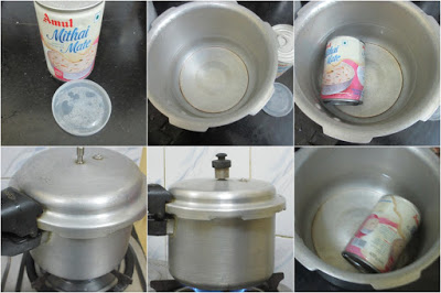 Immerse the can into the pressure cooker and close the lid without the whistle. The can should be made to lay horizontal.