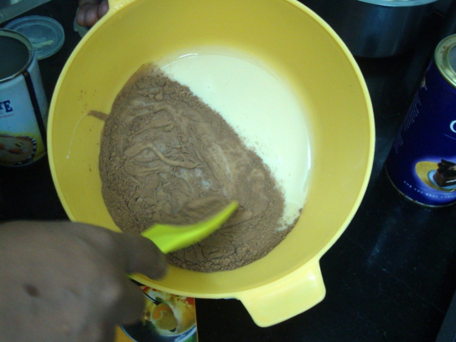 Mix the cocoa powder well into the condensed milk.