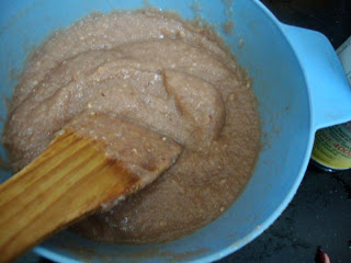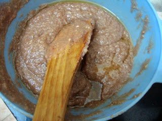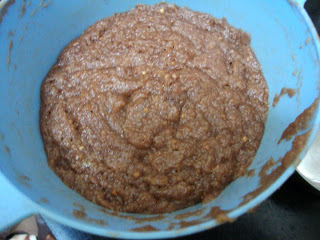 Make a puree of them together, mostly without water. Since I used very small quantity, I had to add 1/2 glass of water, which proved very expensive!