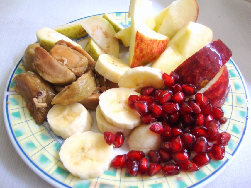 The recipe calls for 1 of each fruit, but I added only half or handful of them.