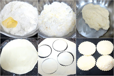 Take the flour in a bowl along with salt and cold butter, rub the butter well and slowly add water to knead to a soft and stiff dough. Let it rest till you make the toppings.