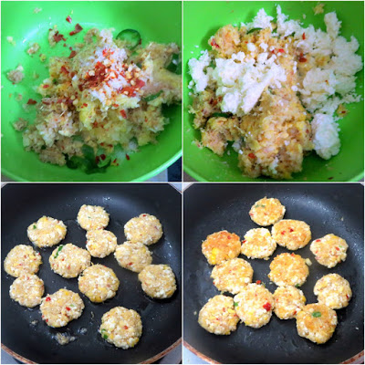 Transfer to a bowl, add potato, crumbled paneer, and other ingredients. Pinch out tiny balls and flatten.