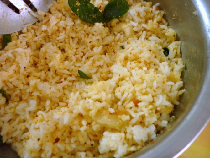 The other new dish that was prepared today was the Paruppu Podi Sadam. I was told to make Paruppu Sadam. Well I wasn't sure what exactly was referred when this rice was quoted. But the essence being that the rice ought to be shades of white, I decided to go ahead with Paruppu Podi Sadam. Let me just say I am floored with this dish. Though it might very well resemble the Podi Rice that I make with Amma's Podi, it very much differed in taste and texture.