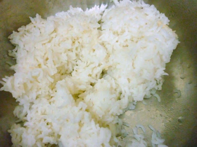 Wash and soak rice for 15 - 20 mins. Pressure cook and once done, let the pressure fall down. Take 1 & 1/2 cup cooked rice, allow it to cool.
