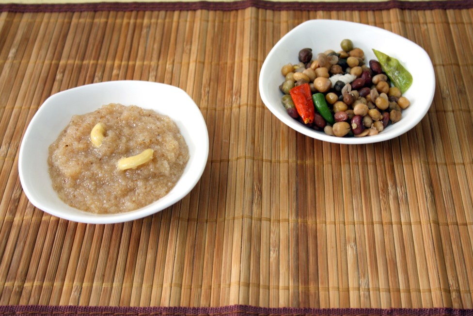 Meanwhile let's enjoy this kesari made with Samba Godumai and a Navadhanya Sundal. I got a ready mixed Navadhanyas and packed. It had channa, both kabuli, brown channa, green chickpea, red rajma, green and white peas, soya, black eyed pea, mochi etc.