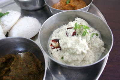 Recently when I had wanted to link back to her coconut chutney, that I have never really felt matched elsewhere, even though I like the hotel chutney, I was surprised I don't have a picture of that! Though most times the coconut chutney is made with fried gram, she makes it best with just plain coconut. I can never say no to it!