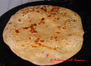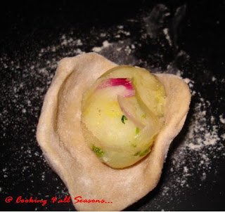 Well I made these just this morning, I had planned for something else. But when Athamma asked me early morning, what I was going to make, I just said Aloo Paranthas. The kids were all asleep, so I had ample time to get this wonder to life! And also I promised Bee, a special one for her event! Of course, there is Sia, and Dhivya too in my list. So here's my Amma's special, just for all of them, all straight from our hot tawa! This is the way Amma makes, and all of us at home love them!