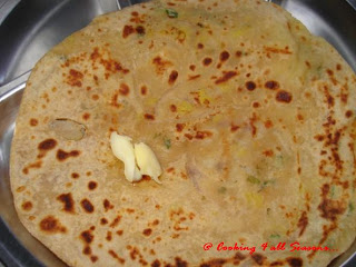 Next scene marches to a shot in my office, to our during lunch hour where one colleague of mine, also used to bring Aloo Paranthas. Her mother too dishes up excellent dishes. I almost felt she could cook as well as my mother. Of course, all mothers cook well. No doubt about that! Few used to ask her what goes in those. She used to reply as how I always do. This, that, and this and loads of Amma's love. Wow, that would surely make the paranthas heavenly. And we used to smear butter on top and in the next flat 1 min, it would disappear! Ah, that was a year back, I stopped making any stuffed paranthas. I love Paneer Paranthas first next to Aloo Paranthas, but it would be grace if we are allowed to eat sitting for a moment, so we stopped having such a dish at night. And during RCI: Pub, I had shot Aloo paranthas and they are still lying in the draft. Somehow, they didn't appeal to me. So never got around posting it.