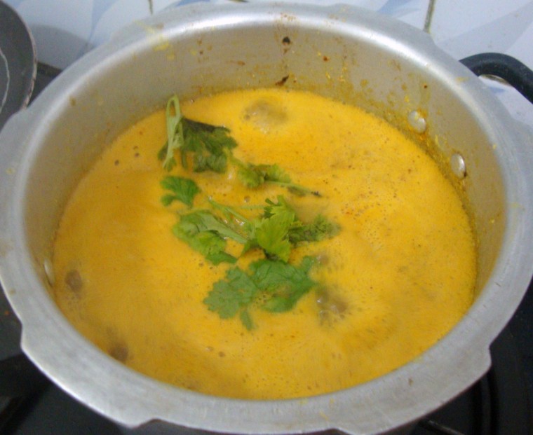Finally add the fresh coriander leaves and simmer for few minutes before removing from heat.