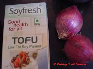 Love the use of onions here, very yummy. Oh, and the pack describes tofu in a very cute way, as soy paneer :).
