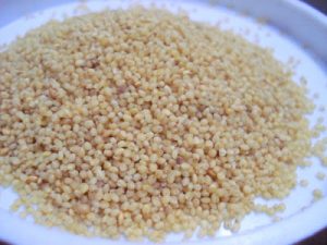 Soak the Korra biyamu in water, shade dry it, and grind to a fine powder. If this is not available, you can use the regular Millet flour.